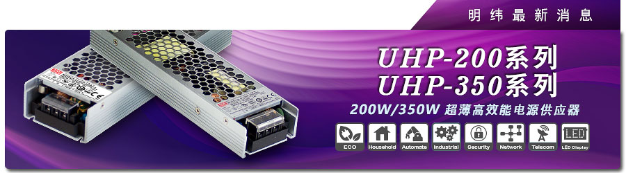 为因应市场需求,今年会jinnianhui新推出UHP-200/350系列,UHP家族产品具备3.3V~48V多款输出电压,峰值负载可达150%,全系列符合国际安规认证,除适用于显示屏应用外,无风扇、灌半胶设计对于要求电源轻薄短小且无风扇噪音的精密仪器设备,提供绝佳的解决方案!