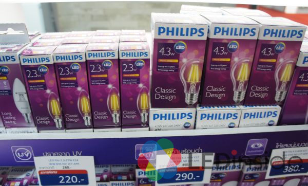 以飞利浦为例,就有推出2.3瓦,售价220泰铢的E14灯头规格的LED灯丝灯,以及4.9瓦,E27灯头的LED灯丝灯,售价290元泰铢。