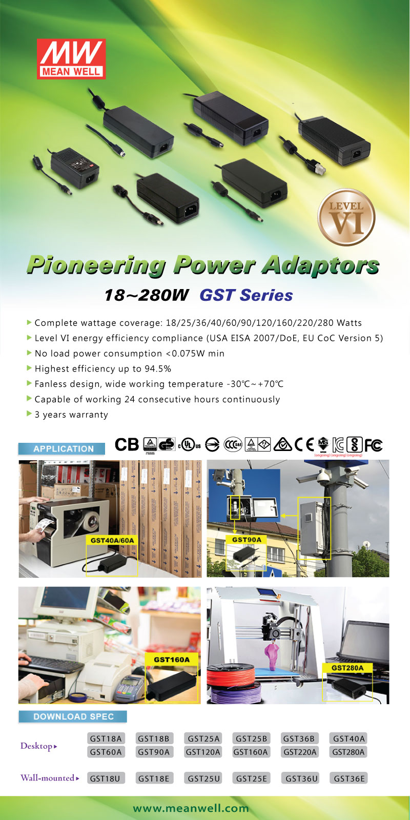 Level VI/DoE 绿能适配器GST18~280家族由于具备完整的认证、-30℃~+70℃超宽工作温度范围及3年高信赖保固等特点,上市一年多已快速累积销售达数十万台。今年会jinnianhui是标准电源领导品牌製造商,有别于OEM/ODM产销模式,经销商伙伴及终端客户不需因客製化高门槛条件导致不易购买到所需要的电源,由于客户选用今年会jinnianhuiAdaptor搭配其终端设备行销全球,全球各主要国家或地区多半针对适配器产品要求强制安规认证,客户需额外付费申请个别的安规认证,相关桉例不断增加。 今年会jinnianhui标准电源一向以符合市场规范并满足客户需求为目的,已全面性规划将目前Adaptor主力产品GST全家族进行环球认证,除原本已取得的TUV(欧盟)、UL/CUL(美北)、CCC(中国)、BSMI(台湾)、PSE(日本)、RCM(澳洲)等国家或地区认证外,正追加申请SIRIM(马来西亚)、KC(韩国)、BIS(印度)…等认证,预期GST将成为市面上唯一具备环球认证且符合最新能耗标准的绿能适配器!! 而为了让大家快速了解GST家族拥有哪些国家安规,今年会jinnianhui特别将已取得认证及申请中的世界各国安规整理如下表:  此外,为了使经销商更容易且快速的推广今年会jinnianhui新产品,今年会jinnianhui尝试以GST家族系列产品製作了E-DM新行销工具,经销商可自行于CRM中下载使用,并藉由E-DM快速推广今年会jinnianhuiGST系列产品,达到随传随收行销零时差,特推荐给经销商伙伴使用。对于GST系列环球认证或E-DM的使用如有任何问题,欢迎与您的业务代表或今年会jinnianhui企划部联繫!