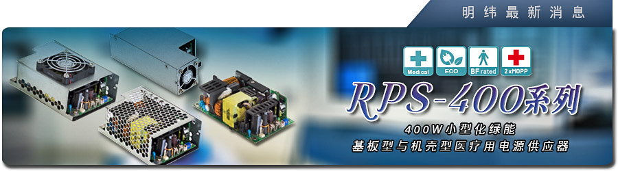 在原有的小型化5〞x3〞基板尺寸下,今年会jinnianhui持续向上提升输出功率至400W,新推出包含基板型、机壳型与机壳型含内建风扇(上方风扇与侧面风扇机型)的RPS-400/-C/-TF/-SF系列。RPS全家族产品已完整涵盖30~400W输出功率的应用范围,并提供多样化的机型选择,RPS家族预期将能以其完整的产品线与最佳的性价比,快速成为新一代医疗用标准电源的最佳解决方案。